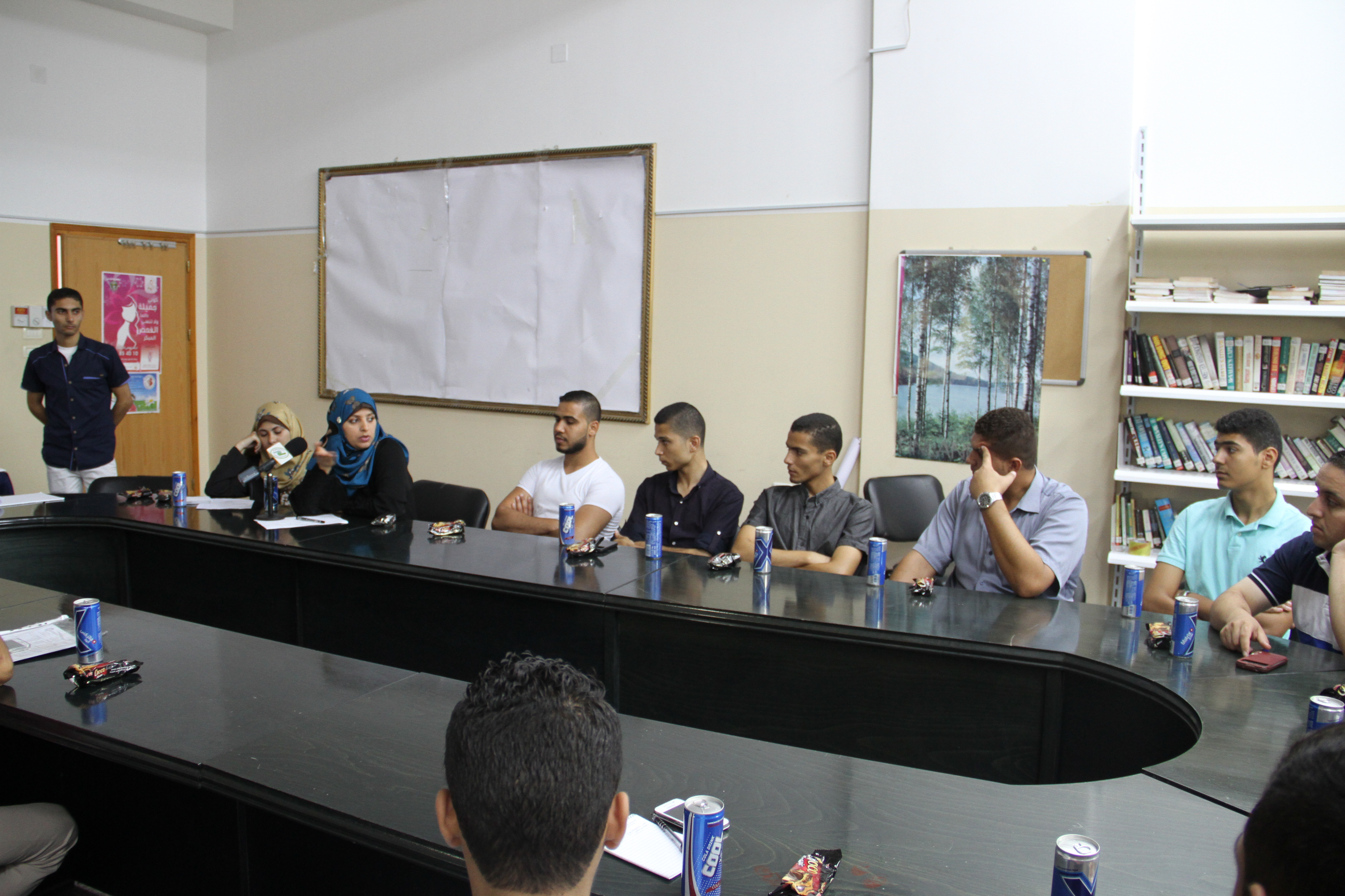 دار النقاش بحضور ممثل عن جمعية اطفالنا للصم و الأخصائية النفسية لمدرسة الحنان للصم، إضافة إلى طلاب الإعلام والنادي الصحفي لجامعة فلسطين.