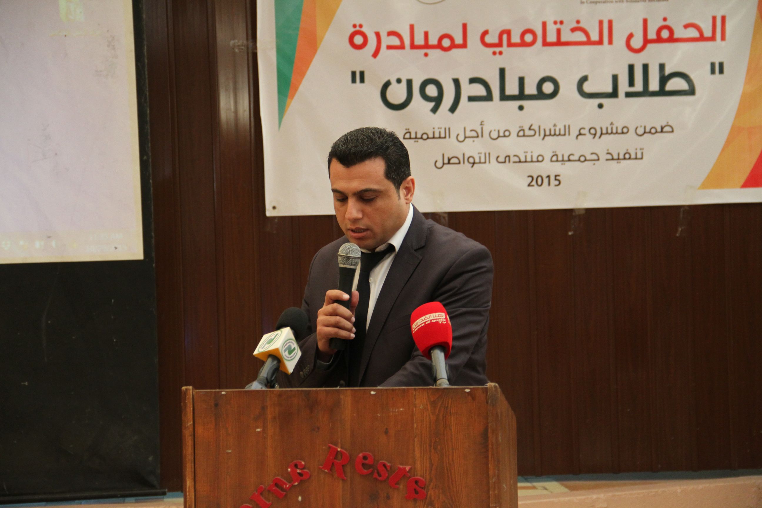 والقى عضو مجلس ادارة جمعية منتدى التواصل وممثلين عن كل من جامعة فلسطين والقائمين على مشروع الشراكة من اجل التنمية مركز العمل التنموي-معا، كلمة عبروا فيها عن اعجابهم بالإنجازات التي احرزها الطلاب خلال فترة المبادرة، وحثهم على المضي قدما في تطوير مهاراتهم الاعلامية وتنميتها.