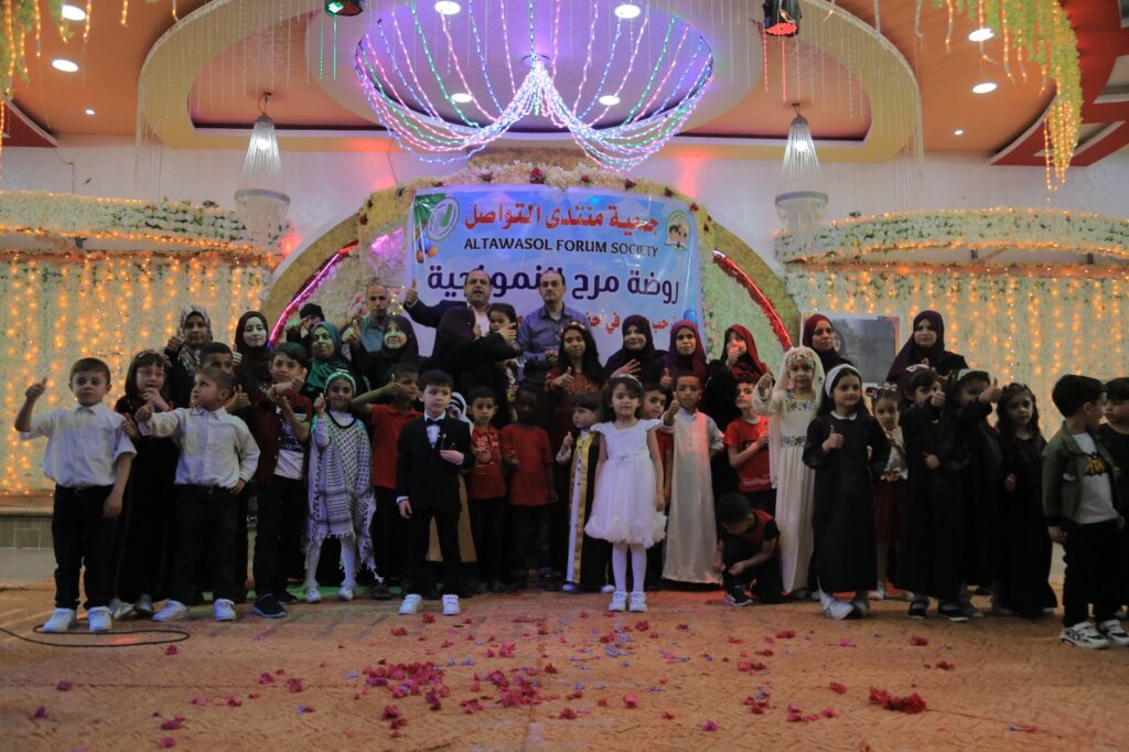 هذه مشاهد من حفل تخرج كوكبة جديدة من أطفال روضة مرح التابعة لجمعية منتدى التواصل، هنا الذين يتراقصون على أنغام الموسيقى، وهنا ينشدون أجمل الألحان، وعيونهم تناجح أهلهم على الجهة المقابلة.