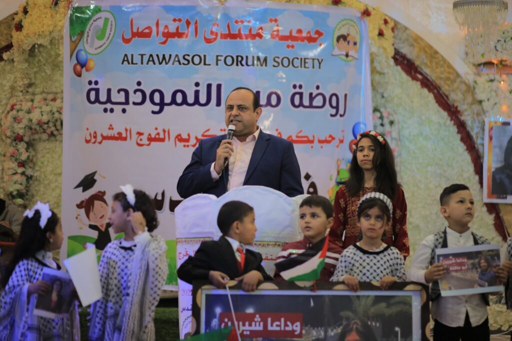 حفل أقامته الروضة يوم الأربعاء 18/5 لتخريج 170طالب وطالبة لعام 2021-2022م، بحضور الدكتور صالح الشافعي رئيس مجلس إدارة جمعية منتدى التواصل والمهندس رامي صوان المدير التنفيذي للجمعية، وعضو نقابة رياض الأطفال في المنطقة الوسطى الأستاذة أم كرم كراز، والأستاذة وسام السردي مديرة روضة مرح، وبعض الموظفين العاملين في الجمعية مع معلمات الروضة ولفيف من مديرات المنطقة الوسطى، وأهالي الأطفال الخريجين .