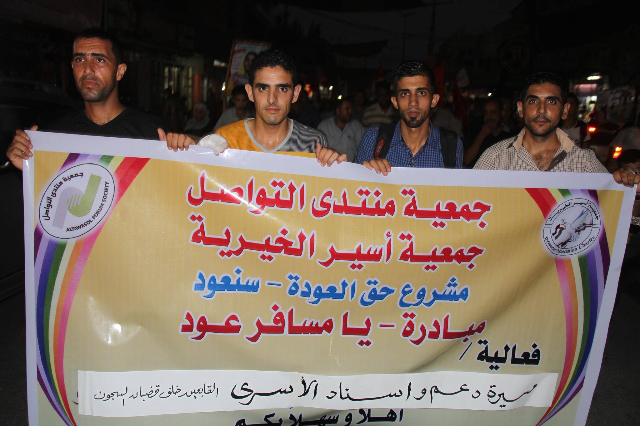 نظمت مبادرة “يا مسافر عود”، التجمع الشبابي لحق العودة “سنعود”، يوم أمس الثلاثاء في رفح مسيرة مساندة ودعم تضامنا مع الأسرى الفلسطينيين فيما يخوضونه من إضراب عن الطعام في سجون الاحتلال، احتجاجا على سياسة الاعتقال الاداري وما تقوم به سلطات الاحتلال من إجراءات تعسفية بحق الأسرى داخل السجون.