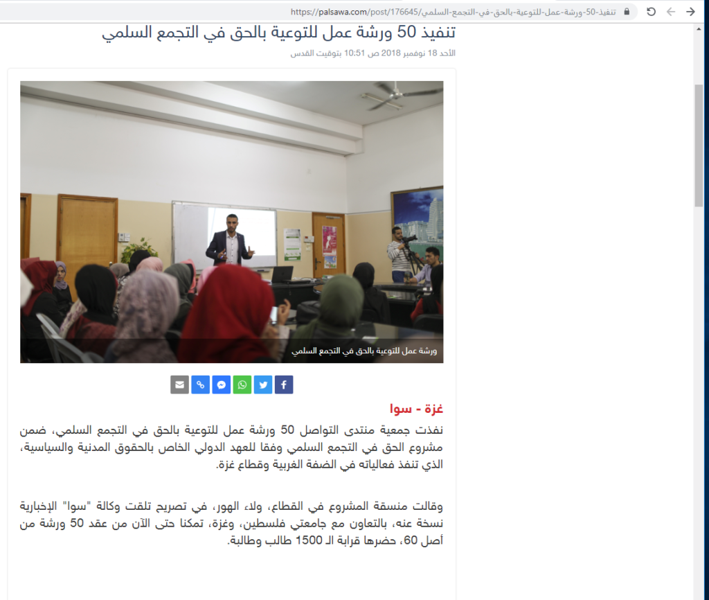 50 ورشة عمل للتوعية بالتجمع السلمي