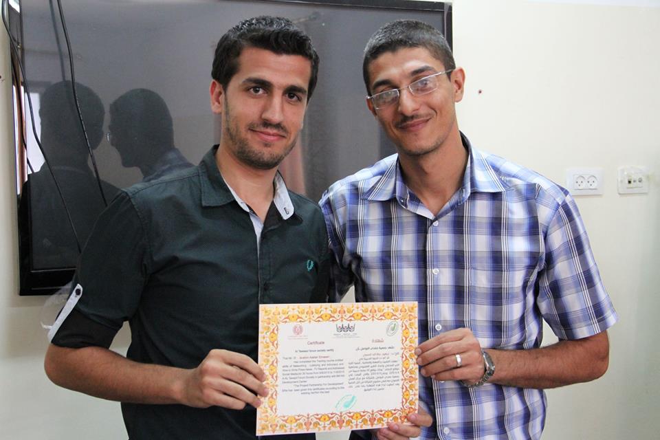 نظمت كل من جمعية منتدى التواصل، والاتحاد العام  للمراكز الثقافية ورشة عمل حول تمثيل الشباب في المجلس التشريعي، لطلاب النادي الصحفي مبادرة “طلاب مبادرون”. أدار الحوار المحامي كارم نشوان، والذي تطرق للحديث عن قانون الانتخابات العامة، وسن الترشح لمنصب رئيس السلطة الوطنية، إضافة إلى معرفة سن الترشح لعضوية المجلس التشريعي. تأتي هذه الورشة ضمن الحملة الوطنية لتخفيض سن الترشح للانتخابات التشريعية من سن 28 عام إلى سن 25 عام. في الختام تم توزيع الشهادات على طلاب مبادرة “طلاب مبادرون” لإنهاء الدورات التدريبية وبدء مرحلة العمل الميداني لإعداد أفلام قصيرة حول قضايا متنوعة.