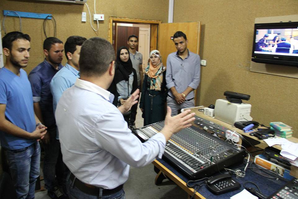 في خطوة استكماليه لتدريب وتطوير النادي الصحفي التابع لجامعة فلسطين، وضمن مشروع الشراكة من أجل التنمية، نظمت جمعية منتدى التواصل عدة زيارات ميدانية تستهدف المؤسسات الإعلامية، حيث استقبل مدير عام الهيئة العامة للإذاعة والتلفزيون  أ. سمير لأغا مجموعة طلابية من النادي الصحفي مبادرة “طلاب مبادرون”، من خلالها تعرف الطلاب على أقسام و آلية العمل التلفزيوني. تضمنت الزيارة أيضا مقر اذاعة صوت الأسرى، وفضائية هنا القدس.