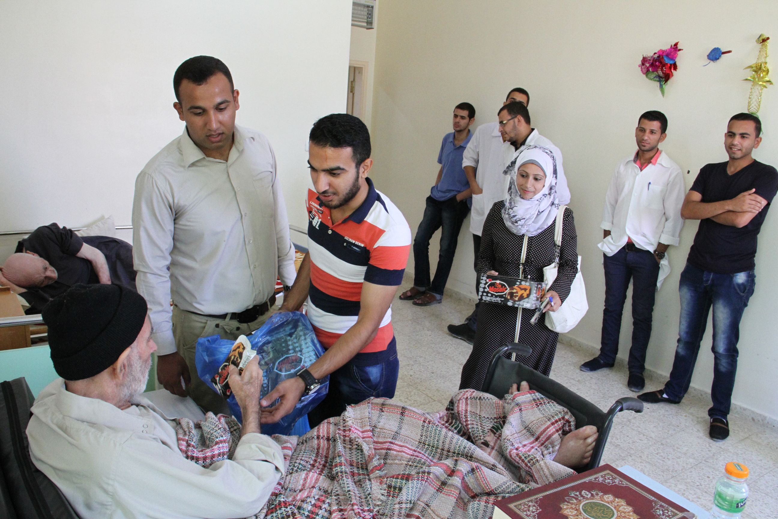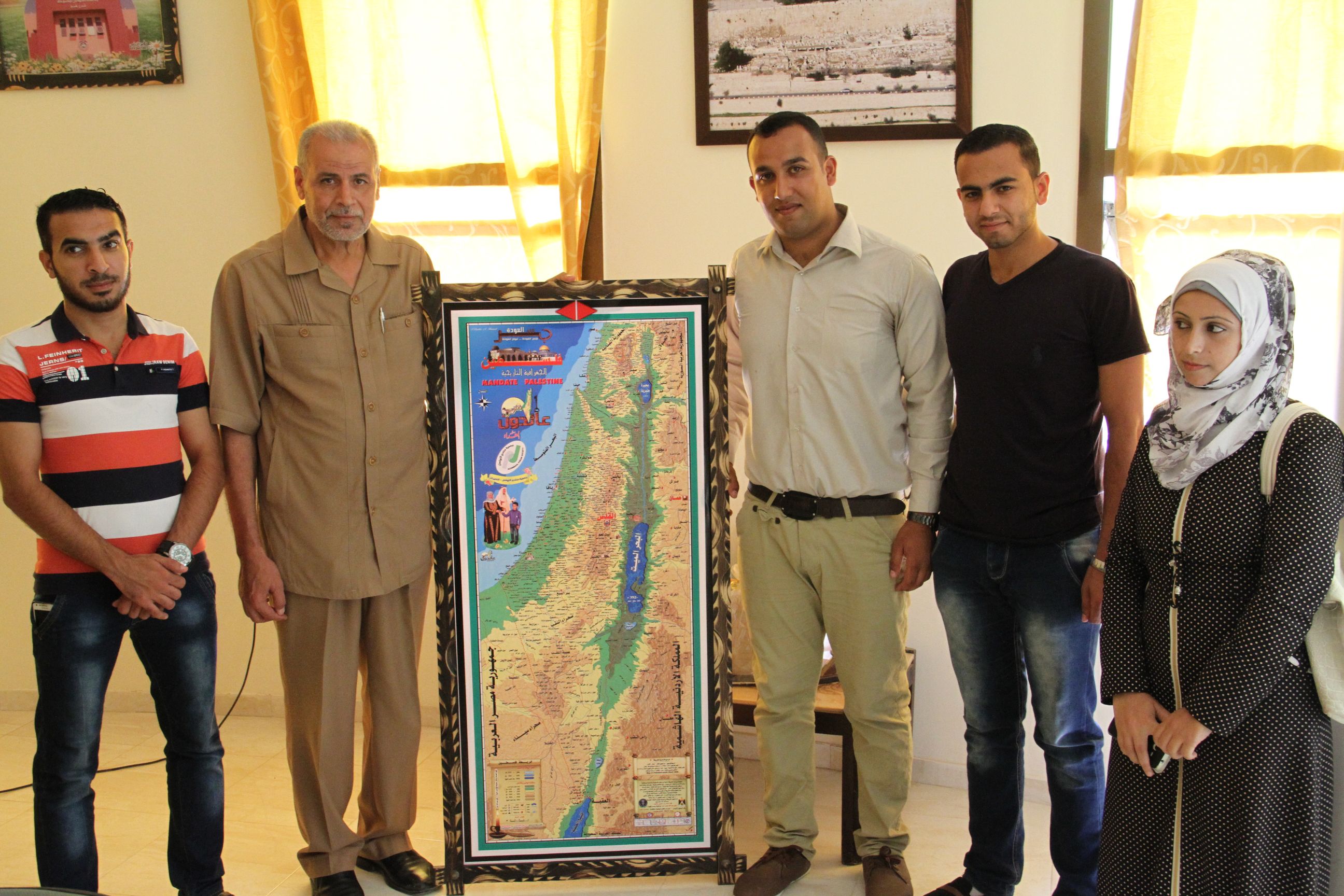 وقدم الفريق خلال زيارته خارطة فلسطين التاريخية لإدارة المركز، كما أجروا جولة في ارجاء المركز قدموا من خلالها الهدايا للمسنين.